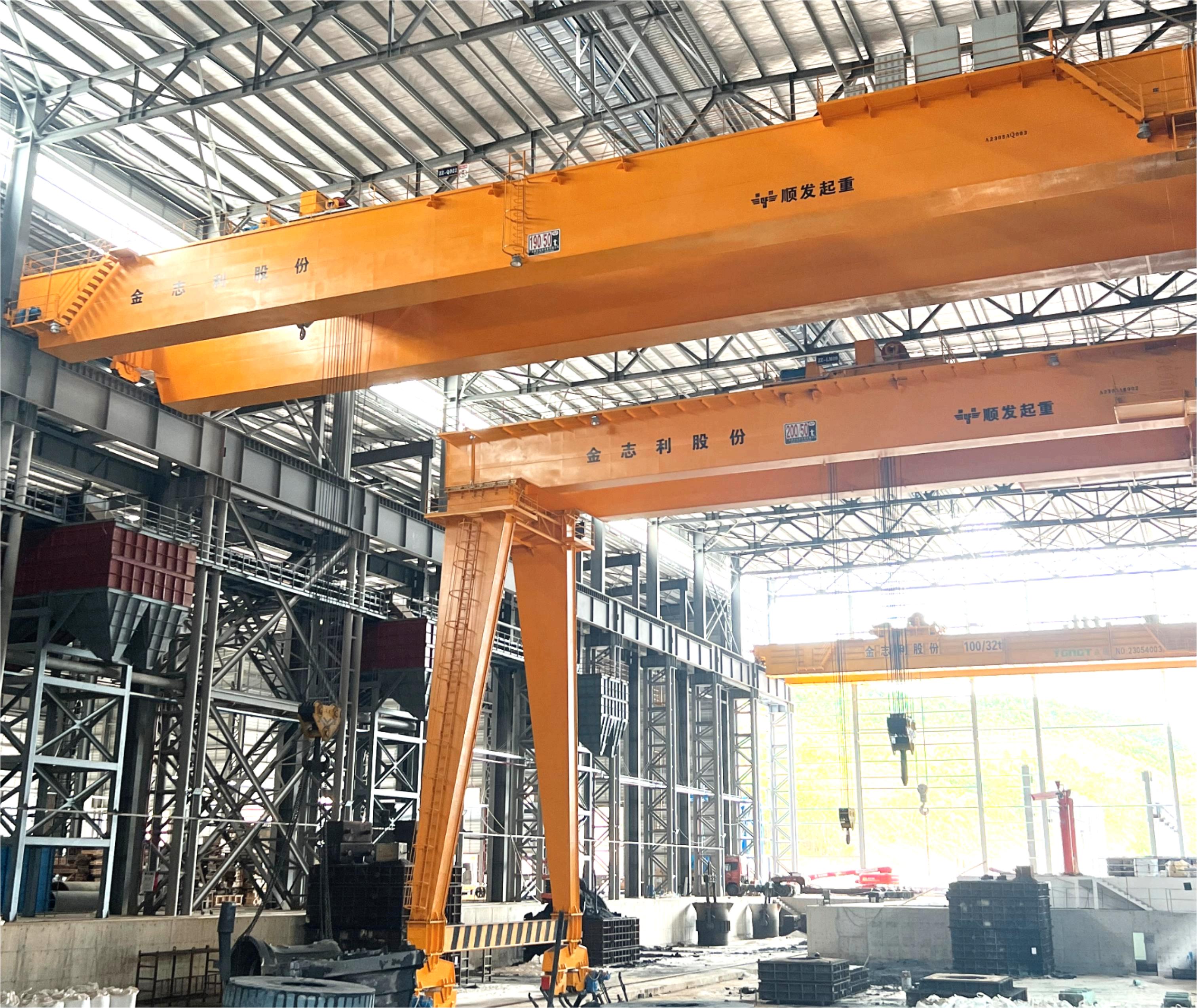 针对项目 “大吨位、高精密、连续化” 的生产需求,蓝狮在线起重提供的200 吨 / 50 吨半门式起重机凭借 “门架 + 桥式” 的复合结构优势,完美适配车间外原料转运与预处理区域的作业场景。其主副钩协同设计可同时完成 200 吨炉料吊装与 50 吨辅助工具转运,配合高精度变频调速系统,确保铁水罐等高温重物在室外到室内的转运过程中实现毫米级定位,从源头规避安全风险。