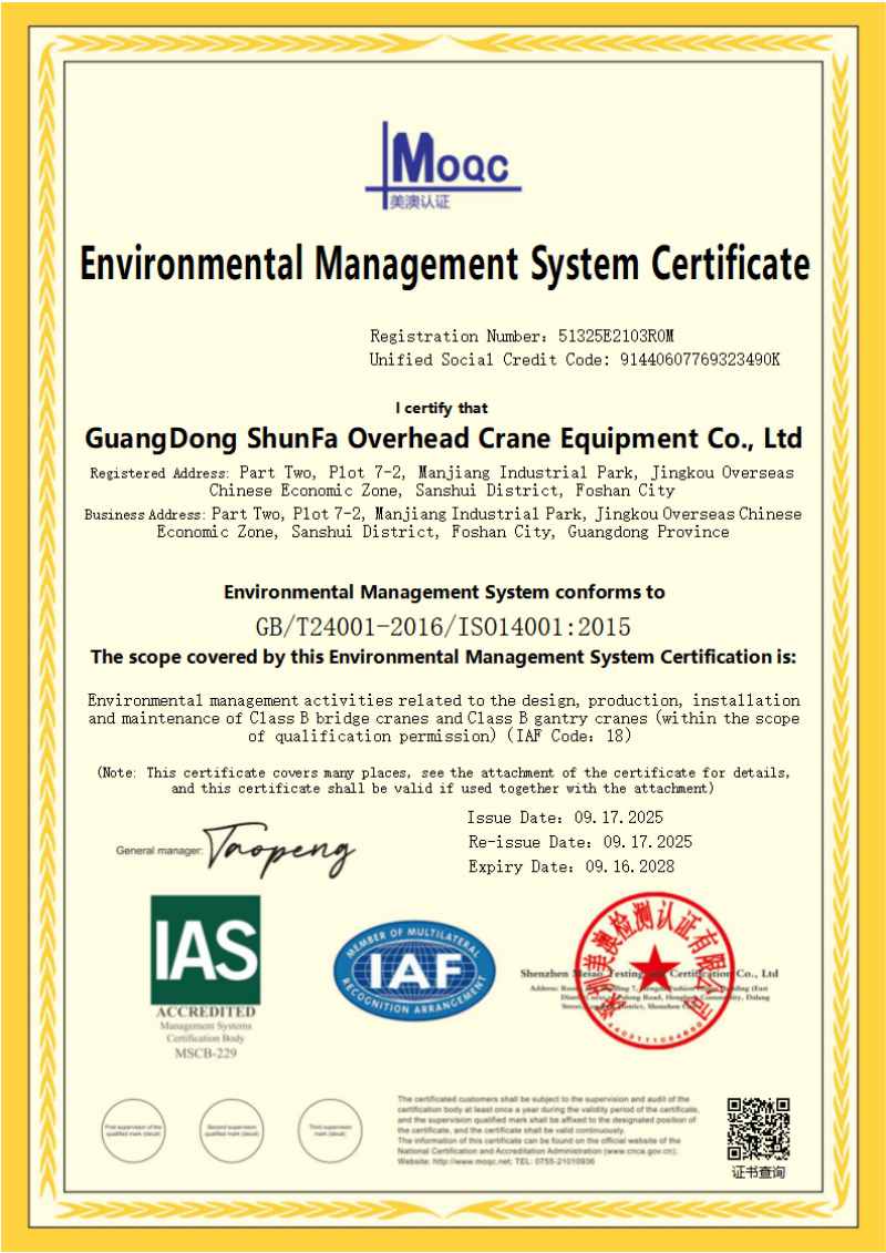 中国建筑集团有限公司(QDO型欧式起重机&MHB型单梁半门式起重机)