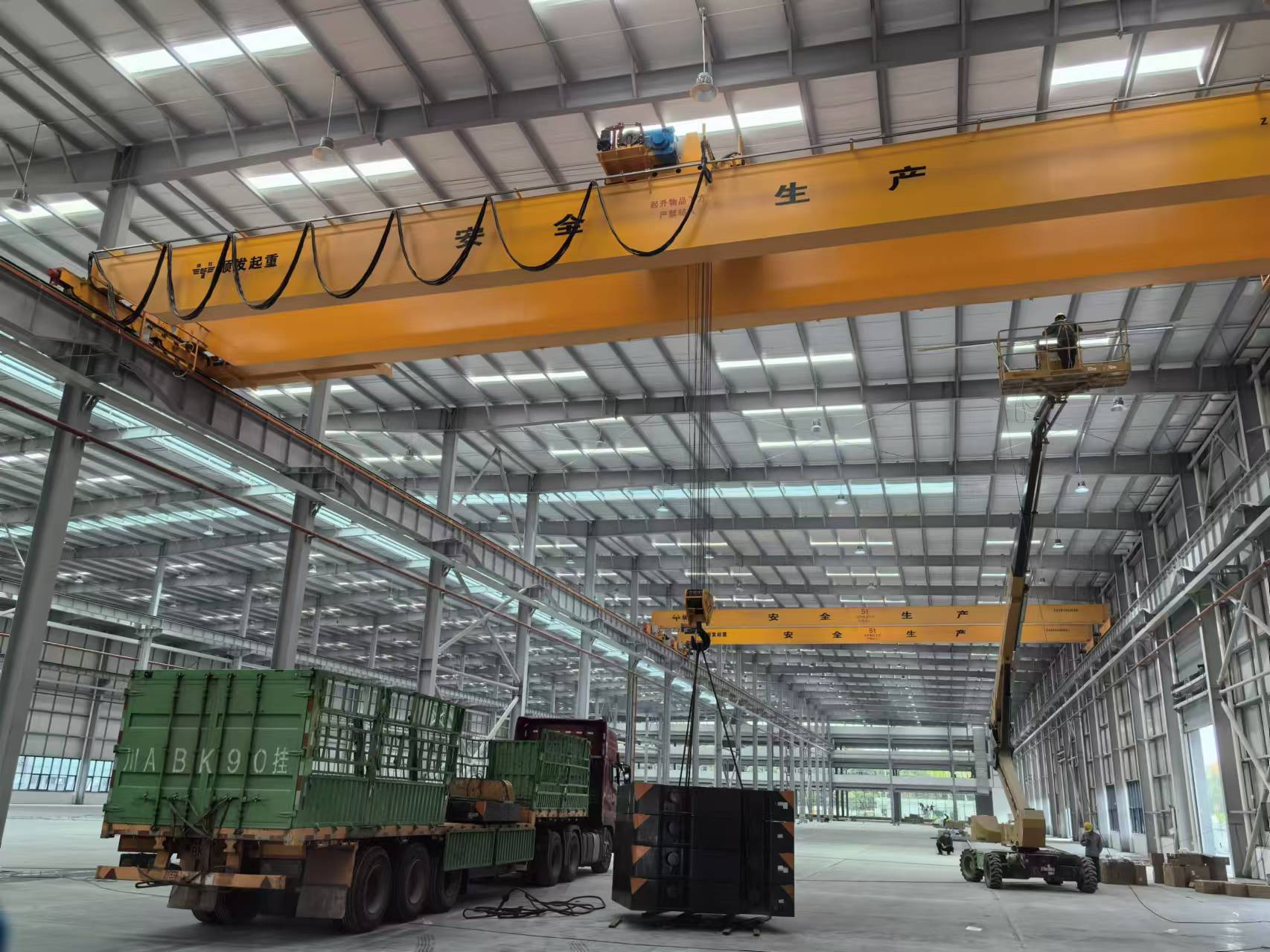 QD型通用桥式起重机,起重机依靠沿厂房行车梁上支承轨道方向的纵向移动、小车的横向移动和吊钩的升降来实现工作流程。常用起重量为5-200t(可定制更大起重量),工作级别为A5-A7级,工作环境温度为-25℃~40℃,禁止在易燃、易爆、腐蚀性介质环境中使用。操纵方式有地面控制、操纵室控制、遥控三种形式供用户选择。