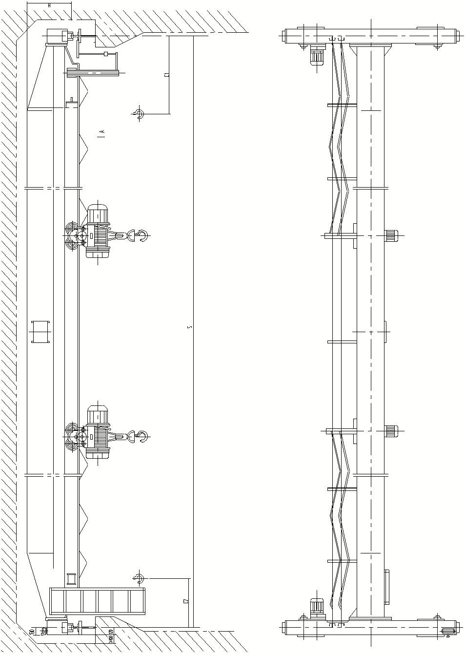 例:起重量:5t+5t,跨度:16.5m,工作级别:A5