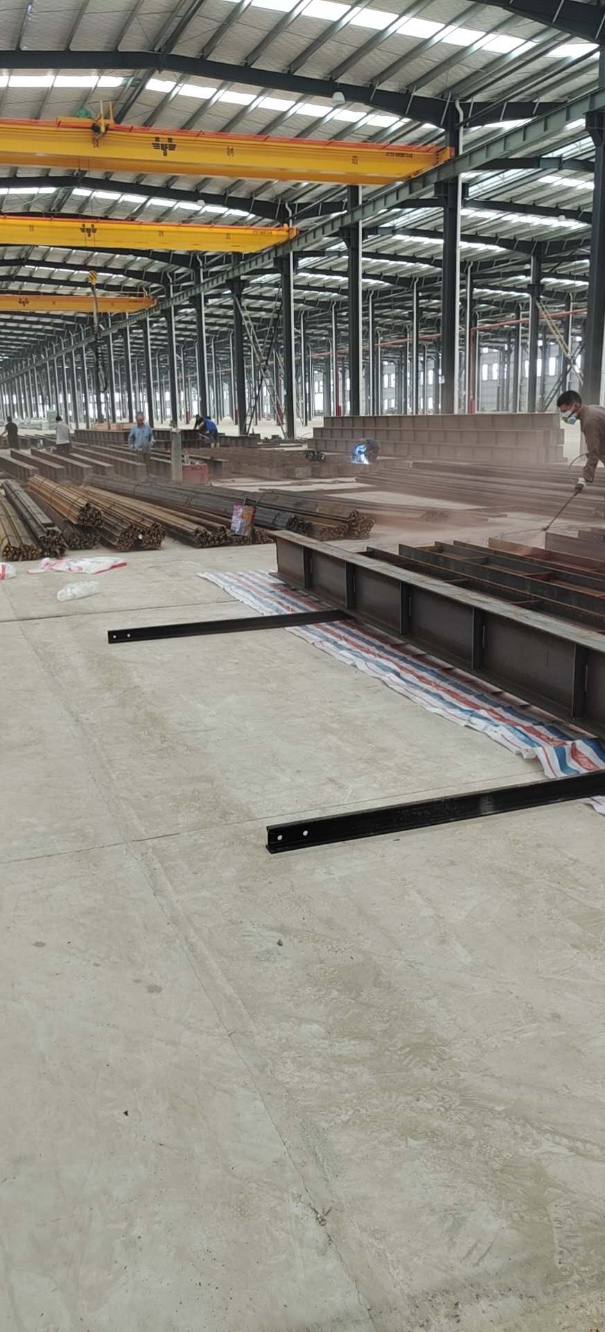 在2020年“疫情”的影响下,跟蓝狮在线 合作多年的老客户,在经济不稳定的情况下,奋发前进向蓝狮在线 购买了27台双梁桥式起重机,并将起重机基础材料(承轨梁、轨道、导电滑触线)工程一并交付蓝狮在线 安装,平均每跨车间长度500米,在烈日炎炎的夏天,蓝狮在线 的安装工人在努力赶工务必在第一时间交付给客户。